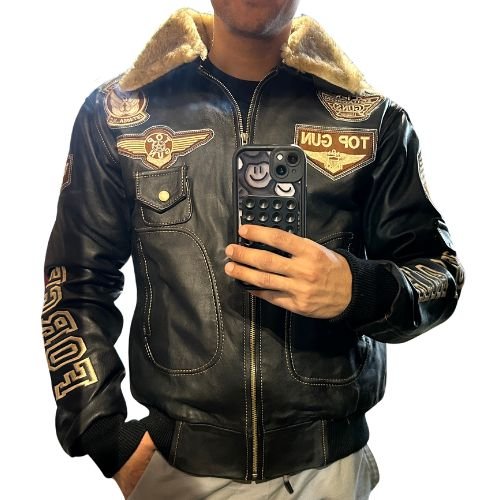 La Chamarra Top Gun Color Negro Para Hombre tiene ese estilo clásico que no falla, perfecta para armar outfits con más actitud sin complicarte. Está hecha en piel suave de borrego, lo que le da una textura muy agradable y un look que se ve bien desde el primer momento.
